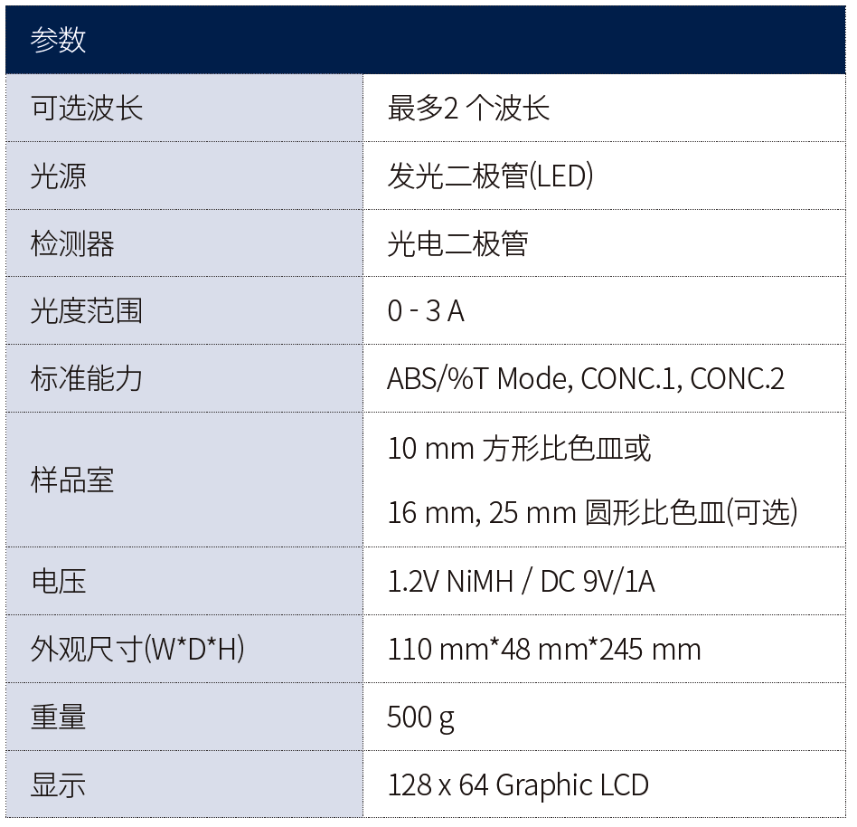 ·可適用的比色皿尺寸: 10 mm標準方形比色皿/?16mm和?25mm圓形比色皿(可選)
