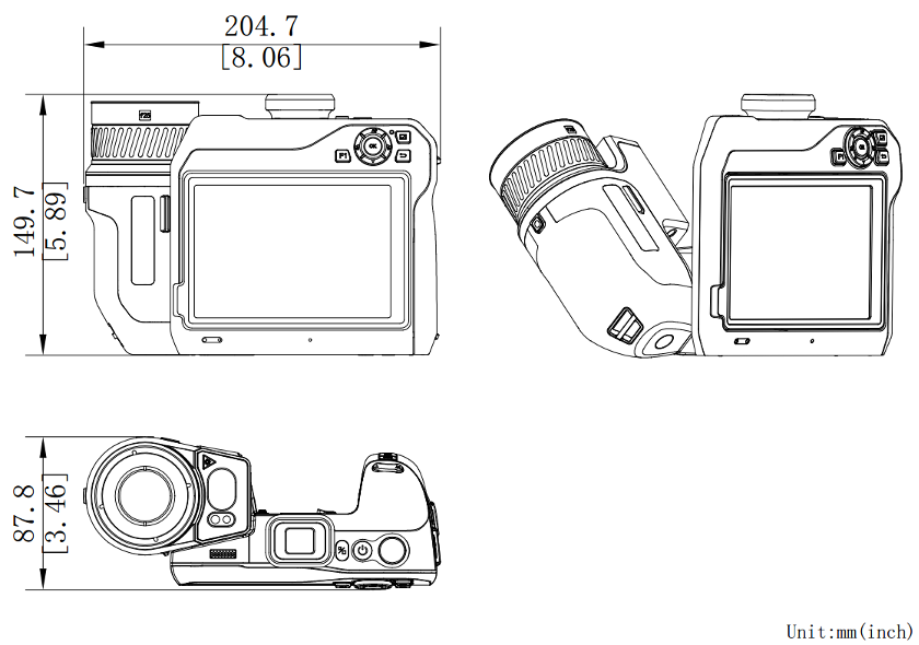 | 204.7 mm × 149.7 mm × 87.8 mm (8.06” × 5.89” × 3.46”)