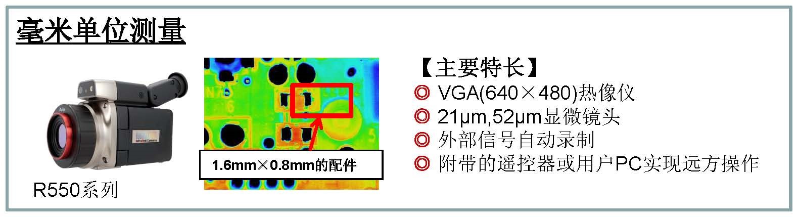 ★高分辨率顯微鏡頭(5μm,15μm)實現(xiàn)熱電偶無法測量的細(xì)小配件的溫度分布,應(yīng)用于機(jī)器的散熱設(shè)計。
